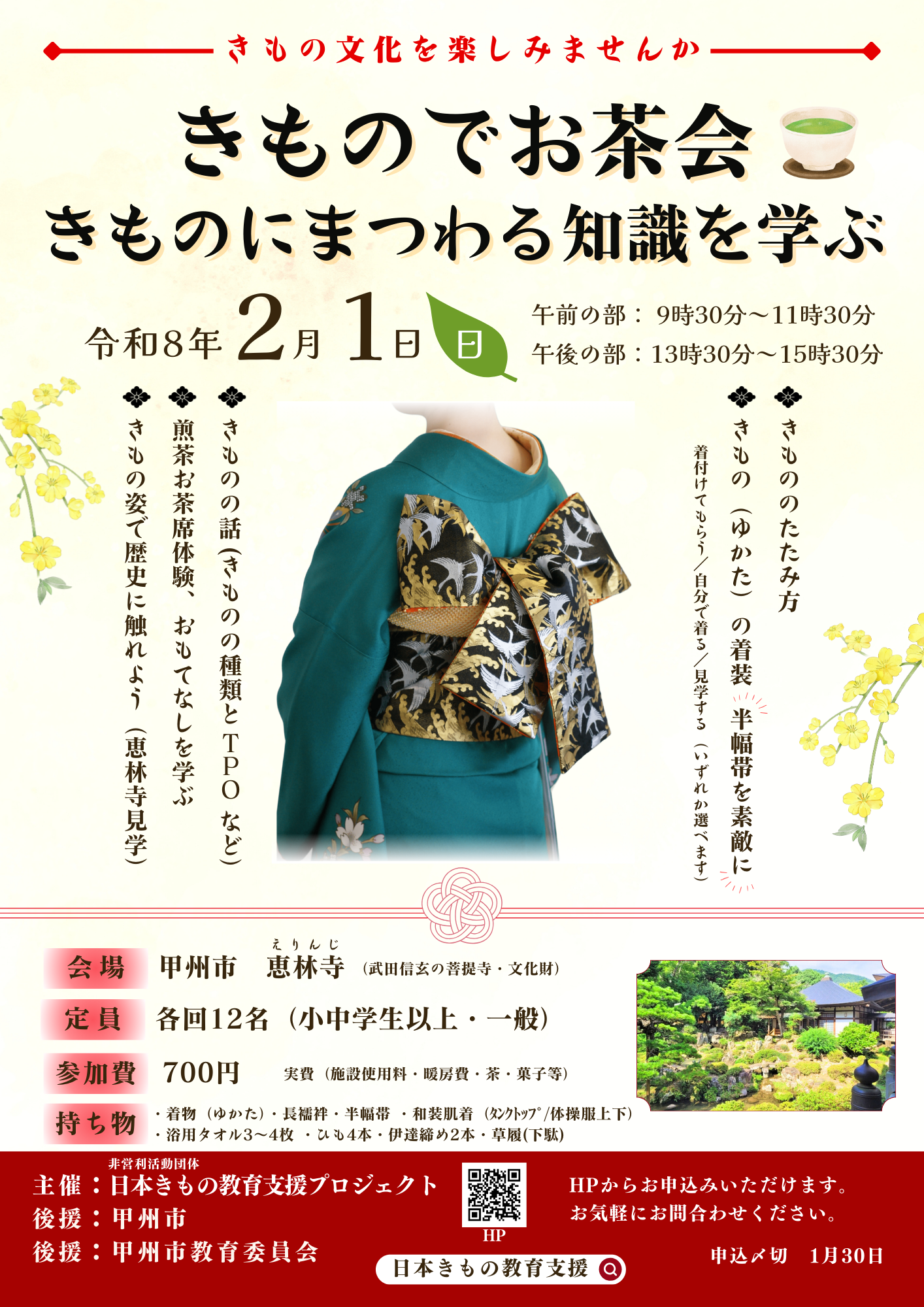 日本きもの教育支援プロジェクトはきもの文化普及活動の一環として、